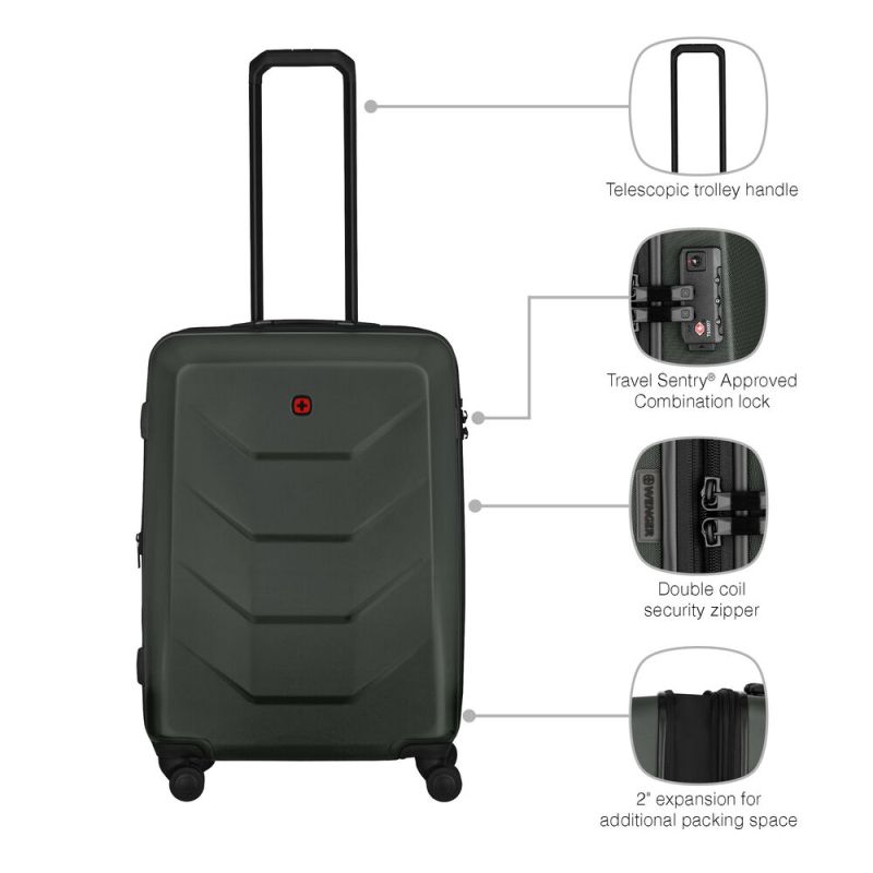 Твърд куфар  с разумни функции за сигурност, изключително секретна ключалка, одобрена от Travel Sentry®, и двоен цип. Плавна функционалност благодарение на четирите двойни колелца и телескопичната дръжка